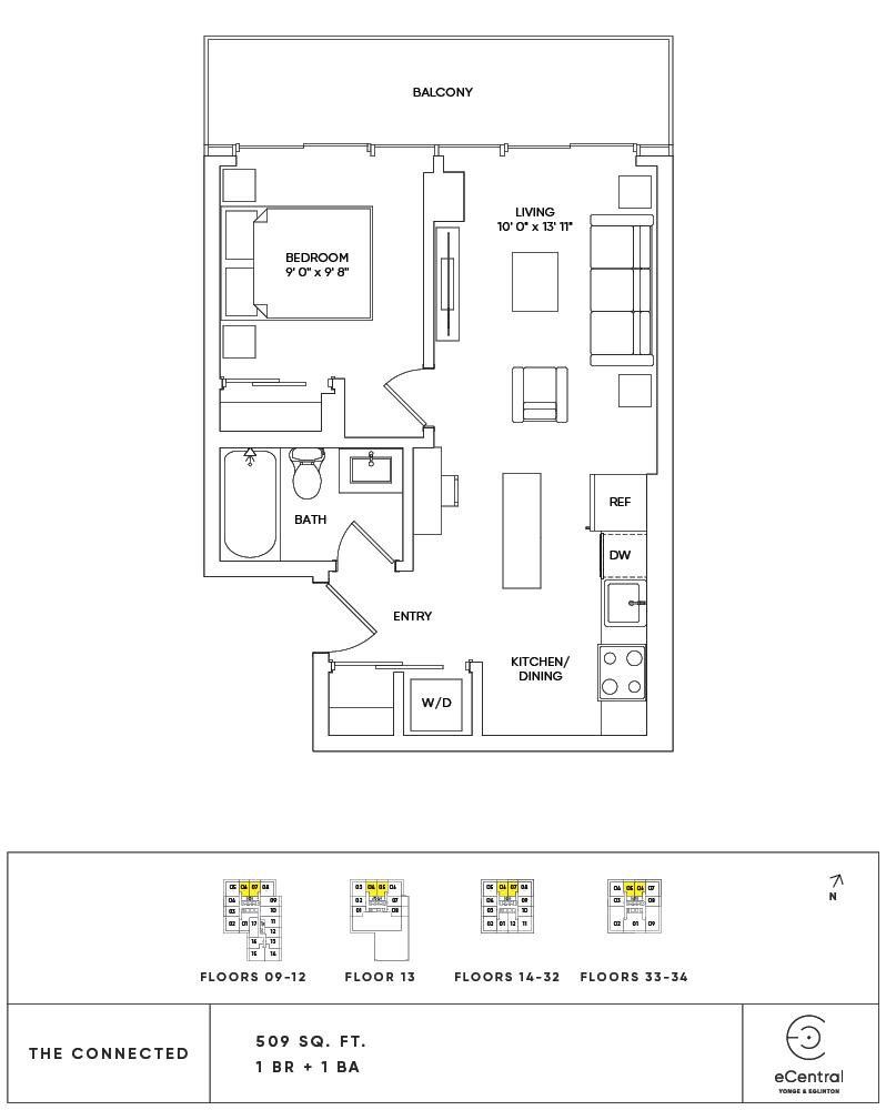 All dimensions are approximate. Sizes and specifications are subject to change without notice. All illustrations are artists concept. Actual usable floor space may vary slightly from stated floor area. Furniture and fixture representations are for illustration purposes only and do not reflect electrical plans for the suite. Appliances and finishes may vary for certain suites. E. & O.E.