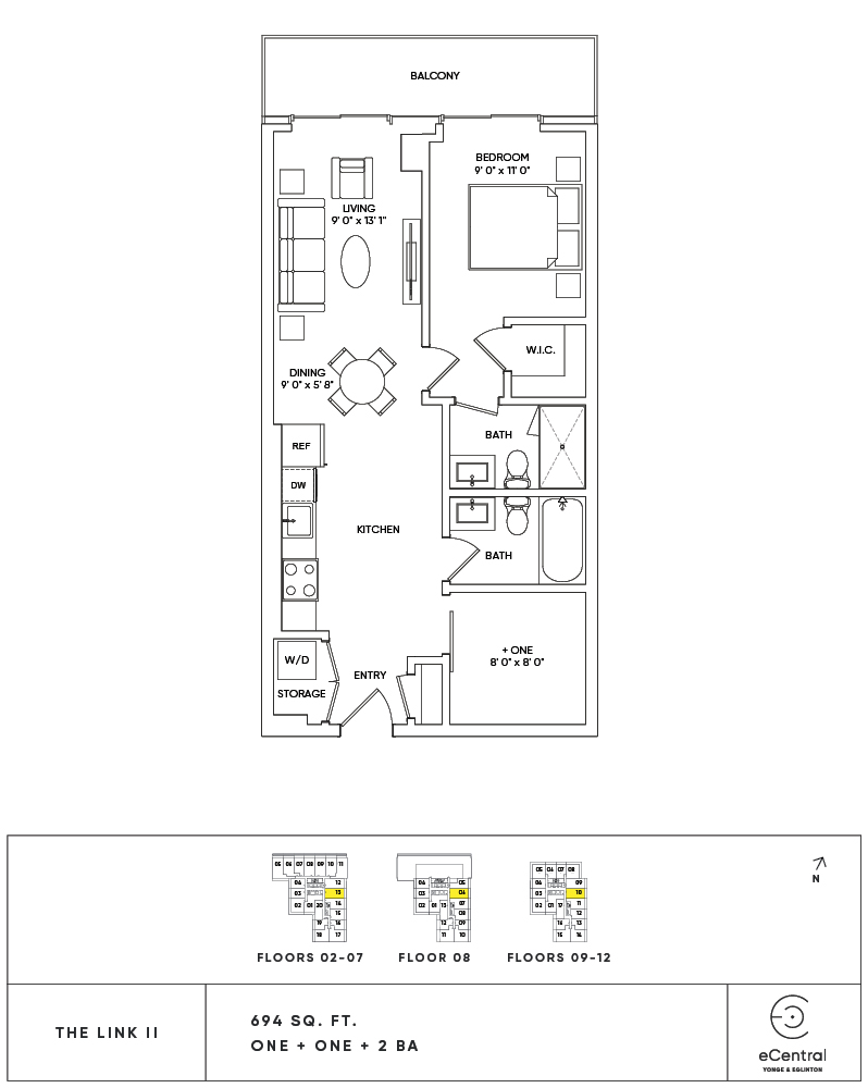 All dimensions are approximate. Sizes and specifications are subject to change without notice. All illustrations are artists concept. Actual usable floor space may vary slightly from stated floor area. Furniture and fixture representations are for illustration purposes only and do not reflect electrical plans for the suite. Appliances and finishes may vary for certain suites. E. & O.E.